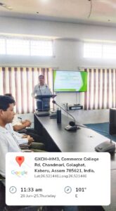 Golaghat Commerce College organised a One day workshop on Office record management on 26th June 2025 in the college premises. Initiated by Mr. Biswajyoti Doley, the programme started with a welcome address by respected principal Dr. Utpal Sarma. He stressed the significance of the role played by Non teaching staff members in the functioning of the college. He also mentioned about the commitment of the college towards upgradation and development of Non teaching staff members of the college. Mr. Rajesh Jaiswal, resource person for the said event delivered a session focusing on the Assam Service rules and Office Record management system. A total of 9 participants attended the programme. IQAC co- ordinator Dr. Pranjal Pratim Dutta also attended the programme. The programme ended with a vote of thanks by Dr. Sonashree Das