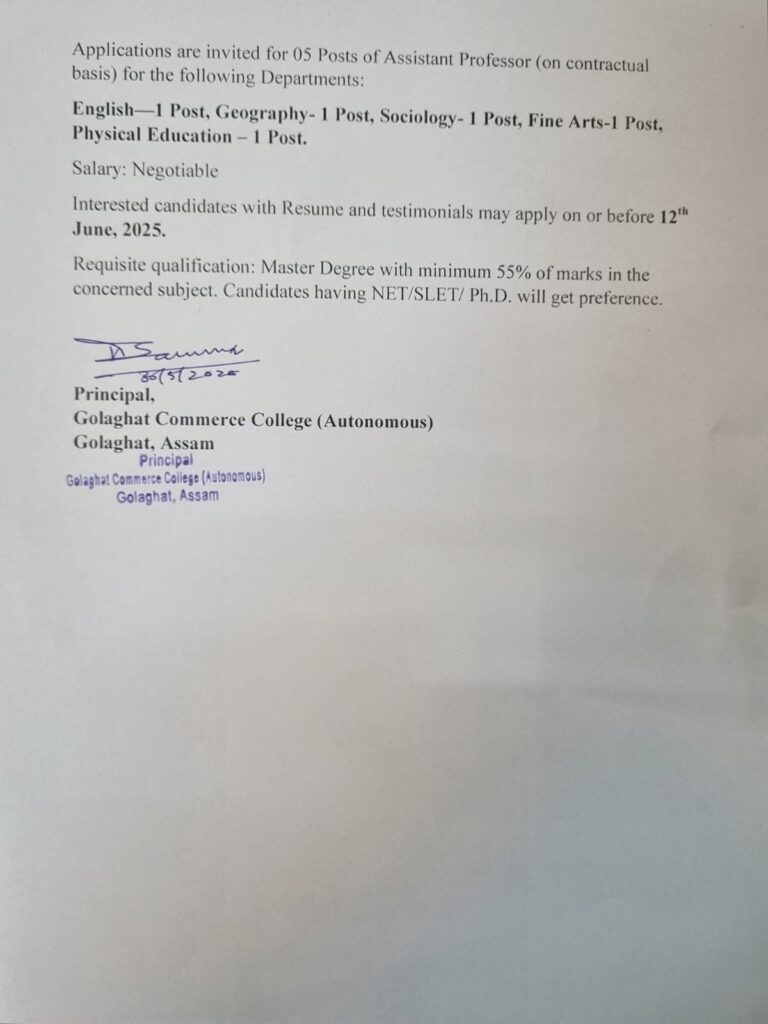 APPLICATION FOR THE POST OF ASST. PROFESSOR