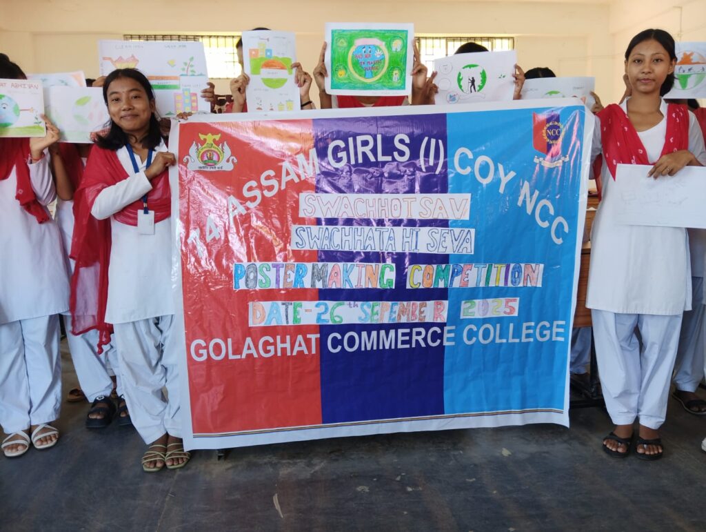 On the occasion of Swachh Bharat Diwas, a Poster Making Competition was organized among the NCC Girls Cadets of Golaghat Commerce College on 26th September 2025.18 cadets were participated inthe events. The theme of this competition was ‘Swachhotsav’ which aligns with the festive spirit of the period.